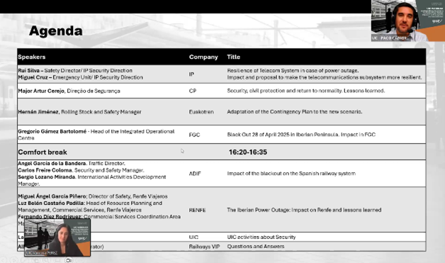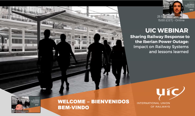 To integrate the lessons learned from this extraordinary event, on 25 September 2025, the International Union of Railways (UIC) hosted a webinar titled “Sharing Railway Response to the Iberian Power Outage – Impact on Rail Operations”. The event brought together over 90 participants from around the world, underlining the international railway community’s interest in understanding and sharing resilience practices and crisis management experiences.