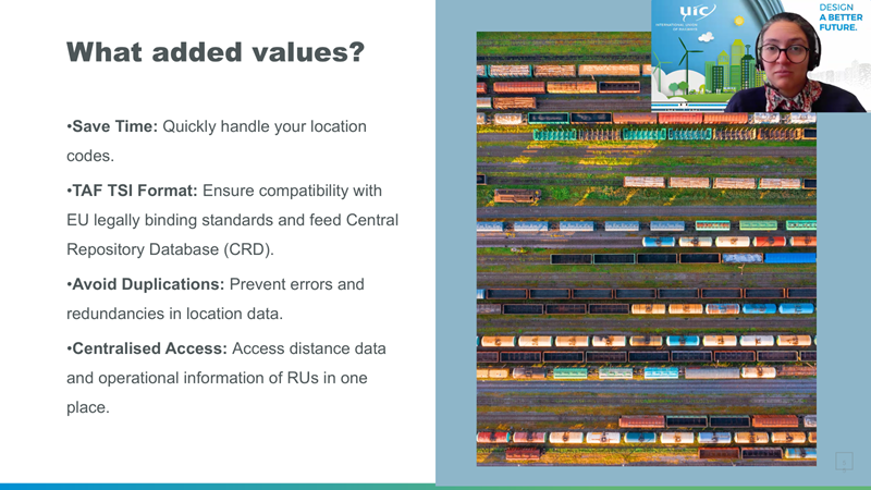 Additionally, Ms Bazeghi briefly mentioned supplementary IT services from RailData, including ISR (for tracking wagon status), Orpheus (for exchanging electronic consignment notes) and the Corida database (for tracking the responsible Railway Undertaking).